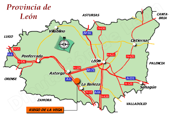 | 42° 23′ 21″ N | 13km->La Bañeza | 45km->León |